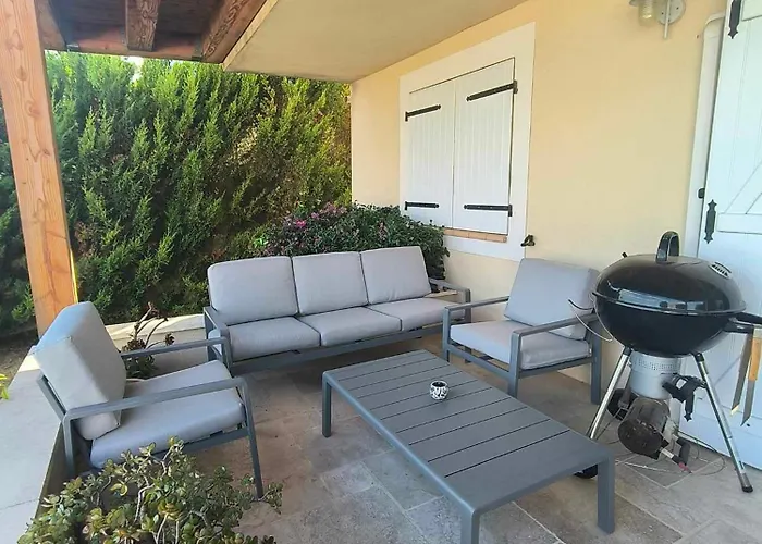 דירת אנטיב Bas De Villa Chez Marta מציעה מטבח מאובזר וכמו כן גם חדרים עם ספה, שולחן כתיבה ואזור ישיבה. Parc de la Pinède זה כ-5 ק"מ משם, ועל מוזיאון לאומי פרנאנד לז'ה אפשר להגיע בפחות מ-1.7 ק"מ.